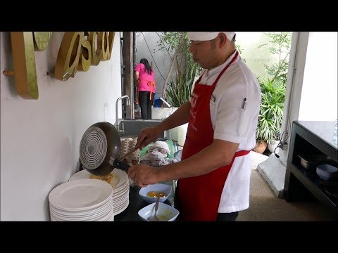 I went to this restaurant for a special dinner some time ago and the menu was very elaborate and classy. Lately I've been there for the breakfast/lunch buffet and I was not disappointed either. For less than 300 baht one can eat to his/her heart's content, with steaks/eggs being cooked at the moment at the BBQ outside the restaurant and a wide variety of salty/sweet dishes inside.