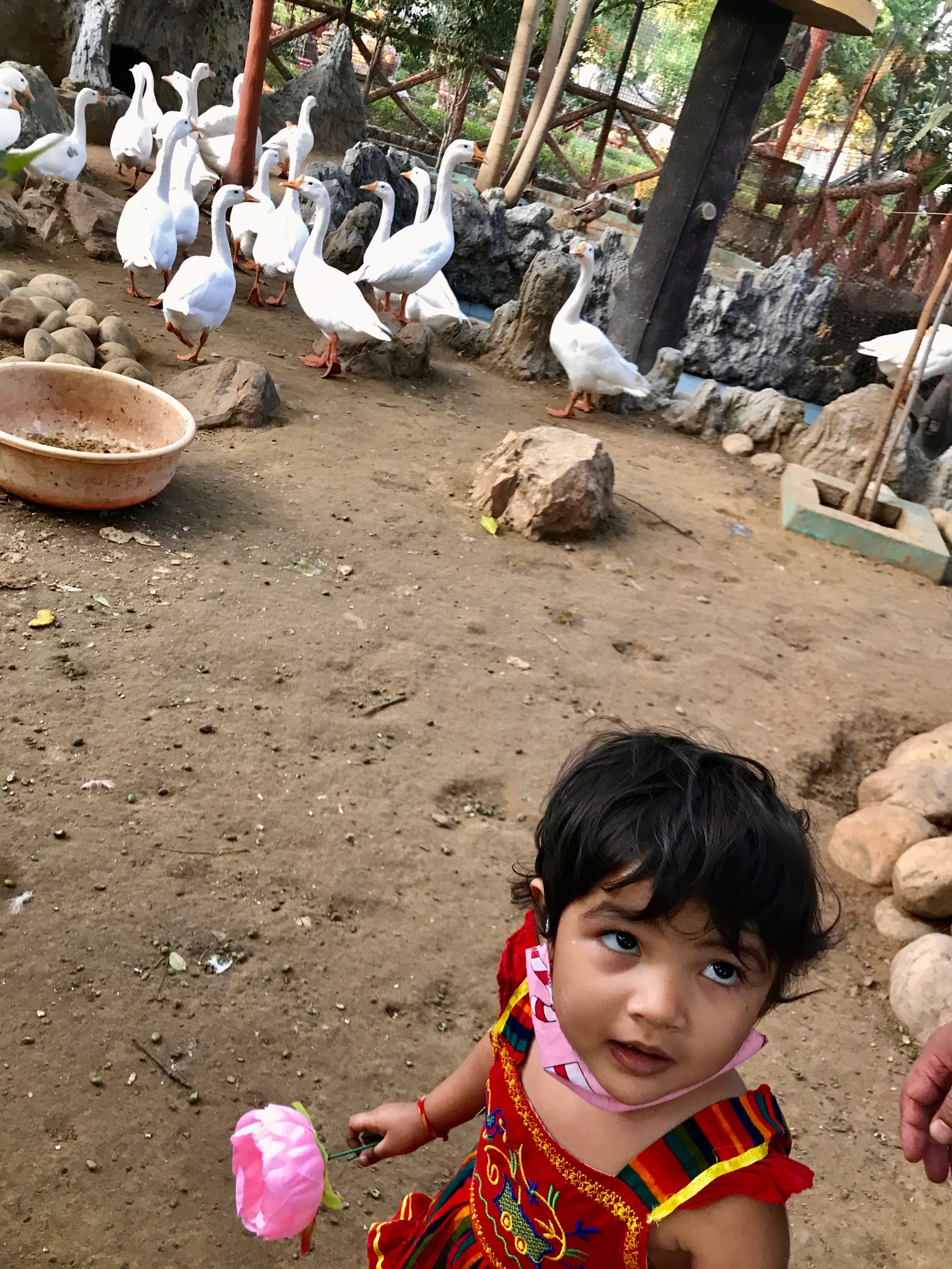 The resort theme has the look and feel of a Rajasthani Village and some beautiful ducks were also spotted at Chokhi Dhani Resort which made Amaira really excited.
