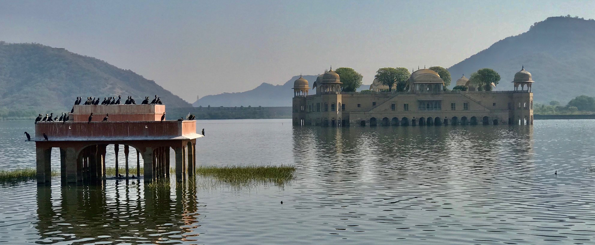 On the way to Amer Fort you will first cross the famous Jal Mahal.Like it's name it is in the middle of a Lake. Lots of birds flock on the Mahal.